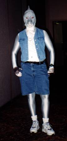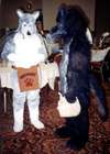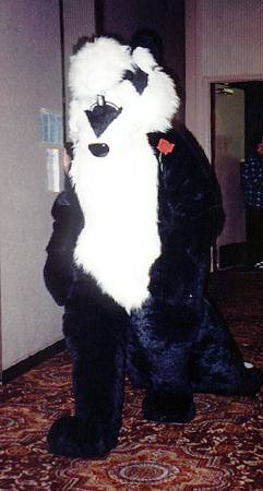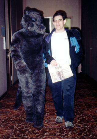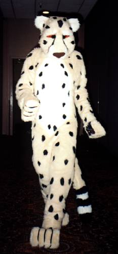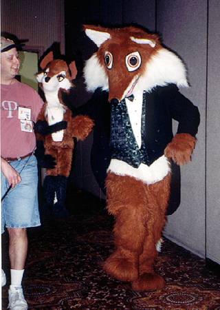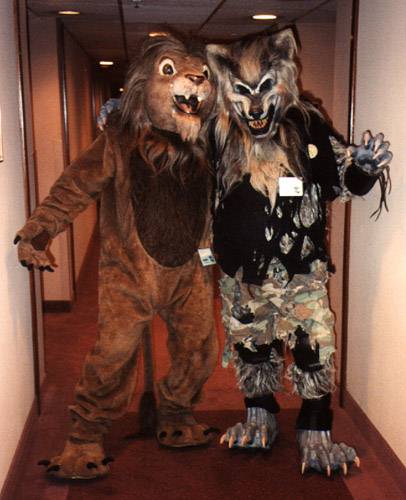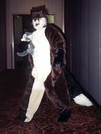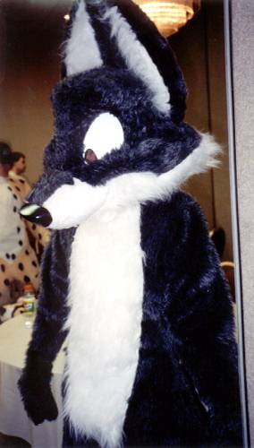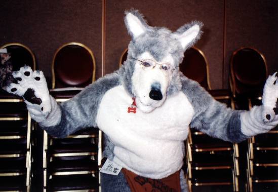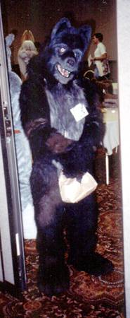 I wake up early and quietly watch a few cartoons while Smash & Dragon sleep on. A breakfast of chocolate covered expresso beans and Sunny D gets the old brain to working. At 11 I have to choose between the Wolf SIG and a fursuit SIG - I head to the fursuit lounge. After an interesting discussion of building fursuits for hire - and construction techniques - it's off to the dealer's room, the only time I saw it while not in costume.