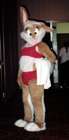 I follow Big Bad Wolf into the presentation run-through and make myself useful as a water boy, snapping a picture of the unofficial CF9 Bunyip. The stage isn't ready for practice, and as the time draws near everyfurry is moved into the back hallway. I meet & help Stanley D. Lion while the presentation order is straightened out. Some higher-up in the hotel staff appears and complains that we're blocking an access/fire hallway, and to make a longer story short, the fursuit prep area gets moved to the Pearl Possum. Robert King & I wind up acting as impromptu traffic control, getting fursuits to the stage in small groups (as we can't overload the access hallway). |