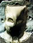 This picture shows one of Silvermane's face skins on it's core mold. Often, several skins must be made before one comes out that is good enough to use. Foam latex is still more of an art than a science, especially in larger pieces. Lately, we've been experimenting with a thin slush-cast latex skin backed with foam latex - it's a lot more durable with only a slight loss in flexibility. Silvermane was the first test of this technique and his face has held up for nine years now. The thin slush-cast layer can also be given the base color of the face.